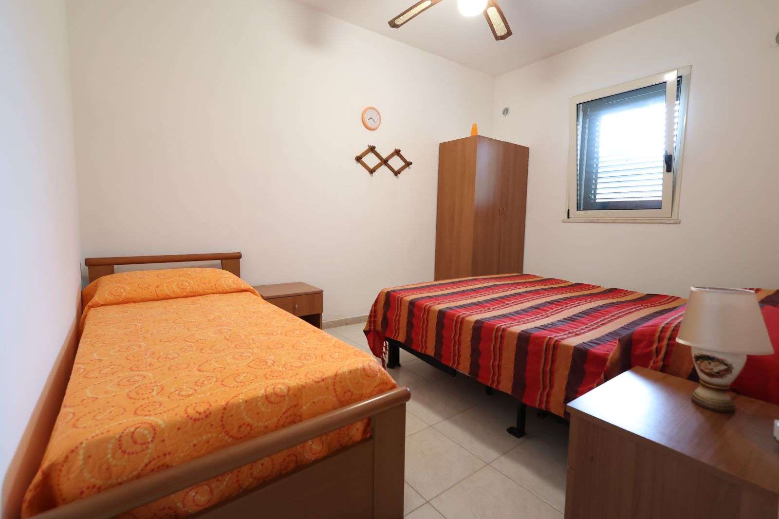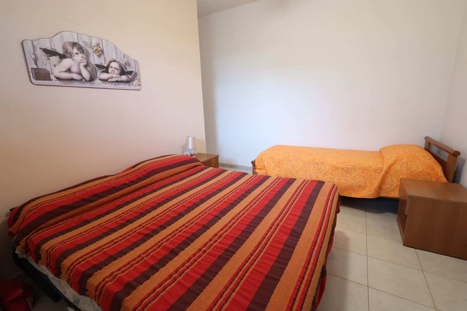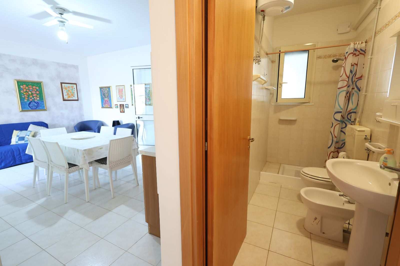 L’appartamento si apre su un ampio e accogliente soggiorno, il luogo perfetto per il relax post-spiaggia, attrezzato con un divano letto matrimoniale e un letto singolo per ospitare comodamente tutti i vostri cari. La zona notte offre due camere matrimoniali ampie e luminose, garantendo un riposo rigenerante dopo una giornata di sole. La cucina è indipendente e completamente attrezzata, ideale per chi ama preparare i sapori del territorio in totale autonomia, mentre i due bagni della casa assicurano la massima praticità anche ai gruppi più numerosi (fino a 7 posti letto).